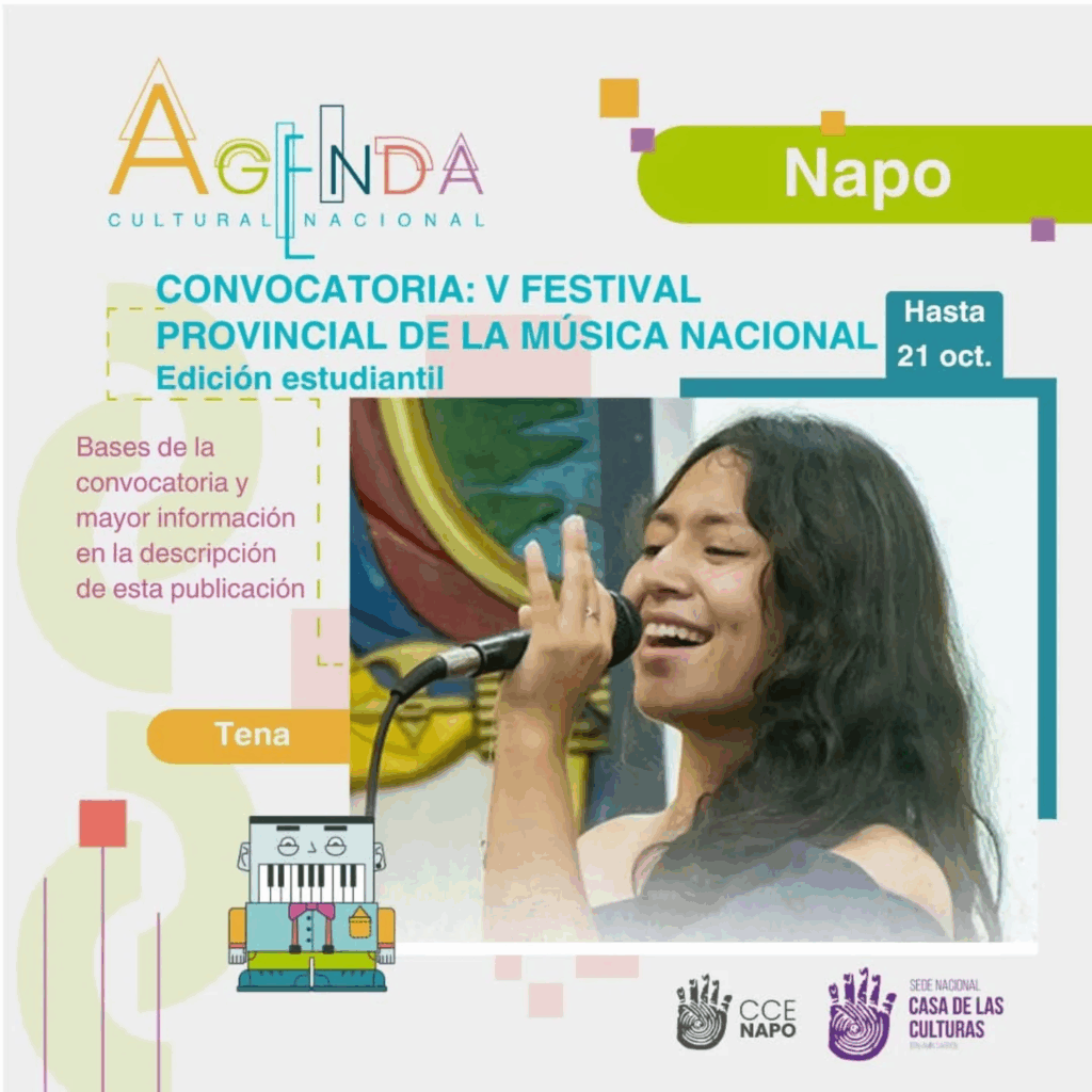 La Casa de la Cultura Ecuatoriana, Núcleo de Napo (CCE Napo) anuncia la apertura de la convocatoria para participar en el V Festival Provincial de la Música Nacional – Edición Estudiantil.