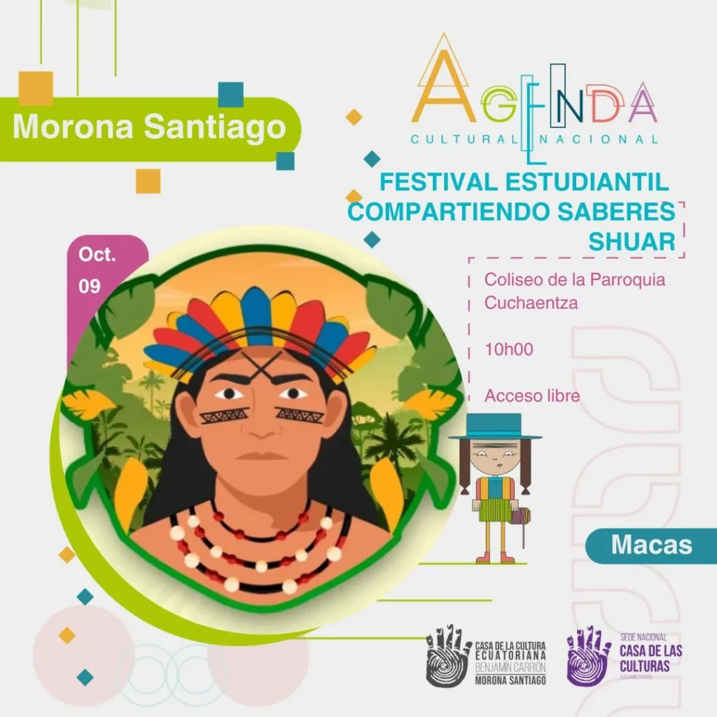 La Casa de la Cultura Ecuatoriana, Dirección Provincial de Morona Santiago, invita a participar en el Festival Estudiantil “Compartiendo Saberes Shuar”, un espacio dedicado a rescatar y difundir los conocimientos, tradiciones y expresiones culturales del pueblo Shuar.