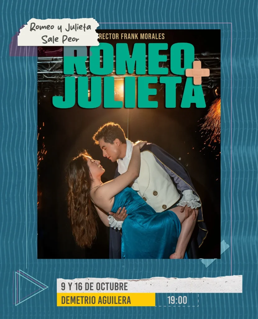La singular obra “Romeo y Julieta sale peor”, dirigida por Frank Morales, ofrece una versión irreverente y divertida del clásico de Shakespeare. En escena, una compañía amateur intenta montar la obra, pero todo sale mal: luces que fallan, utilería que se desarma y un falso Shakespeare que desata el caos entre risas.