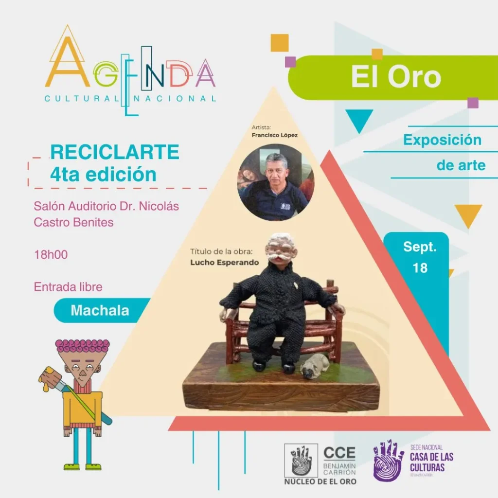La Casa de la Cultura Ecuatoriana Núcleo de El Oro invita a la inauguración de la exposición Reciclarte 4ta Edición, del artista Francisco López. Esta muestra destaca la creatividad y la identidad cultural a través de la transformación de materiales reciclados en propuestas artísticas únicas.