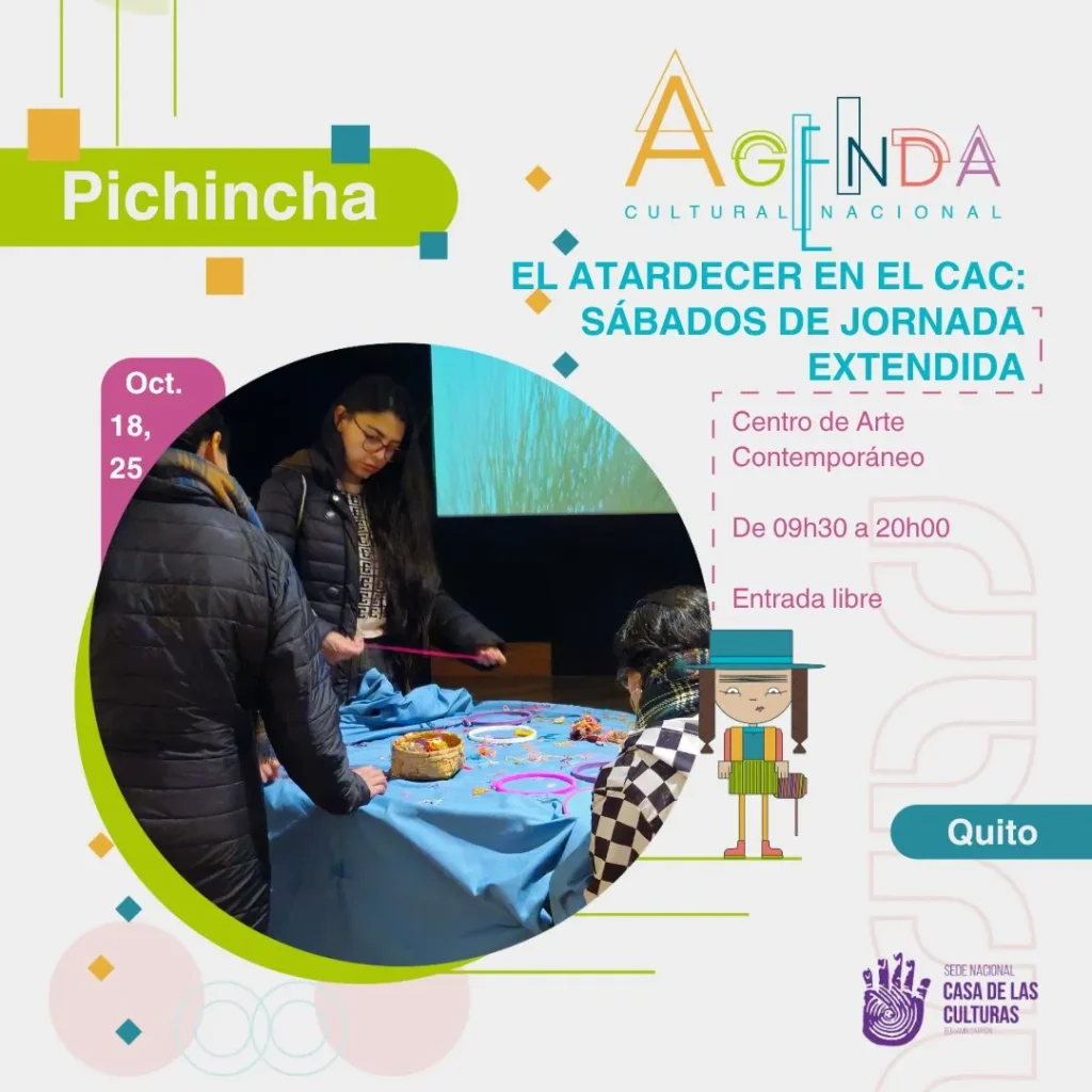 El Centro de Arte Contemporáneo de Quito ofrece una jornada en horario extendido con una programación educativa diseñada para disfrutar en familia, con amigos o de manera individual. La propuesta incluye talleres creativos, visitas guiadas y experiencias que invitan a explorar el arte desde el movimiento, la palabra y la comunidad. Esta iniciativa busca acercar al público a nuevas formas de vivir y comprender el arte contemporáneo en un ambiente participativo y accesible.