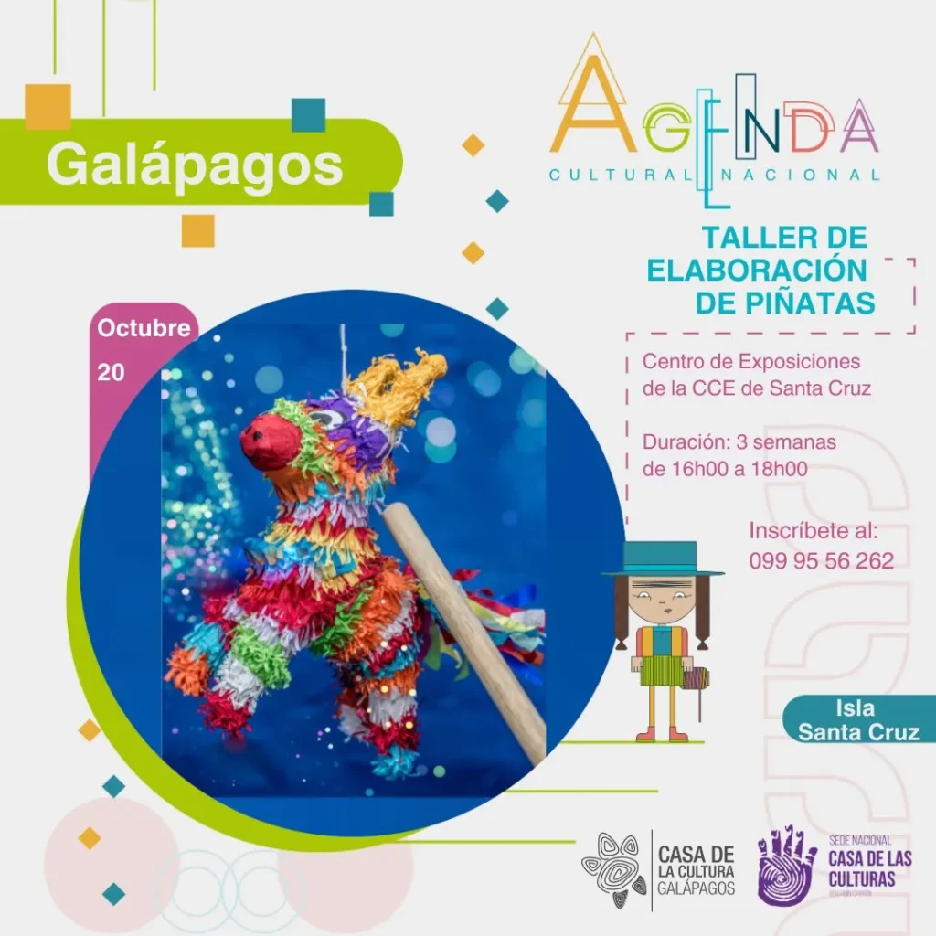 La Casa de la Cultura Ecuatoriana, Núcleo de Galápagos, invita al público a participar en el Taller de Elaboración de Piñatas, un espacio creativo diseñado para fomentar el aprendizaje artístico y el aprovechamiento de materiales reciclados. Durante tres semanas, los participantes aprenderán sobre diseño, técnicas de construcción y decoración de piñatas, combinando arte, sostenibilidad y diversión.