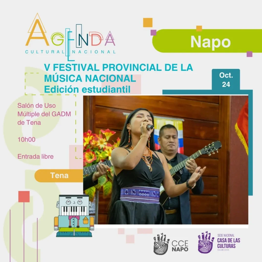 La Casa de la Cultura Ecuatoriana, Núcleo de Napo, invita a la comunidad a disfrutar de la presentación del V Festival Provincial de la Música Nacional, edición estudiantil. Este evento celebra el talento joven y promueve la preservación de la música tradicional ecuatoriana a través de interpretaciones de estudiantes de distintas instituciones educativas de la provincia.
