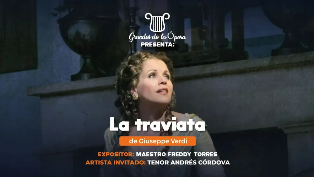 La Sala Multiartes propone una sesión de apreciación musical dedicada a La Traviata, una de las óperas más representadas del compositor italiano Giuseppe Verdi. El maestro Freddy Torres conducirá un recorrido por el contexto histórico, la estructura dramática y los recursos musicales que convierten a esta obra en un clásico universal.