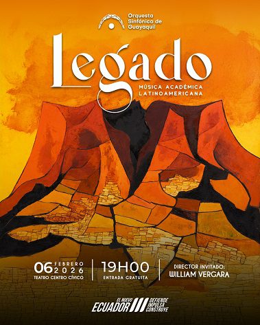 La Orquesta Sinfónica de Guayaquil ofrecerá el concierto “Legado”, una propuesta que recorre la música académica latinoamericana mediante obras representativas de la región. La velada estará dirigida por el maestro invitado William Vergara.