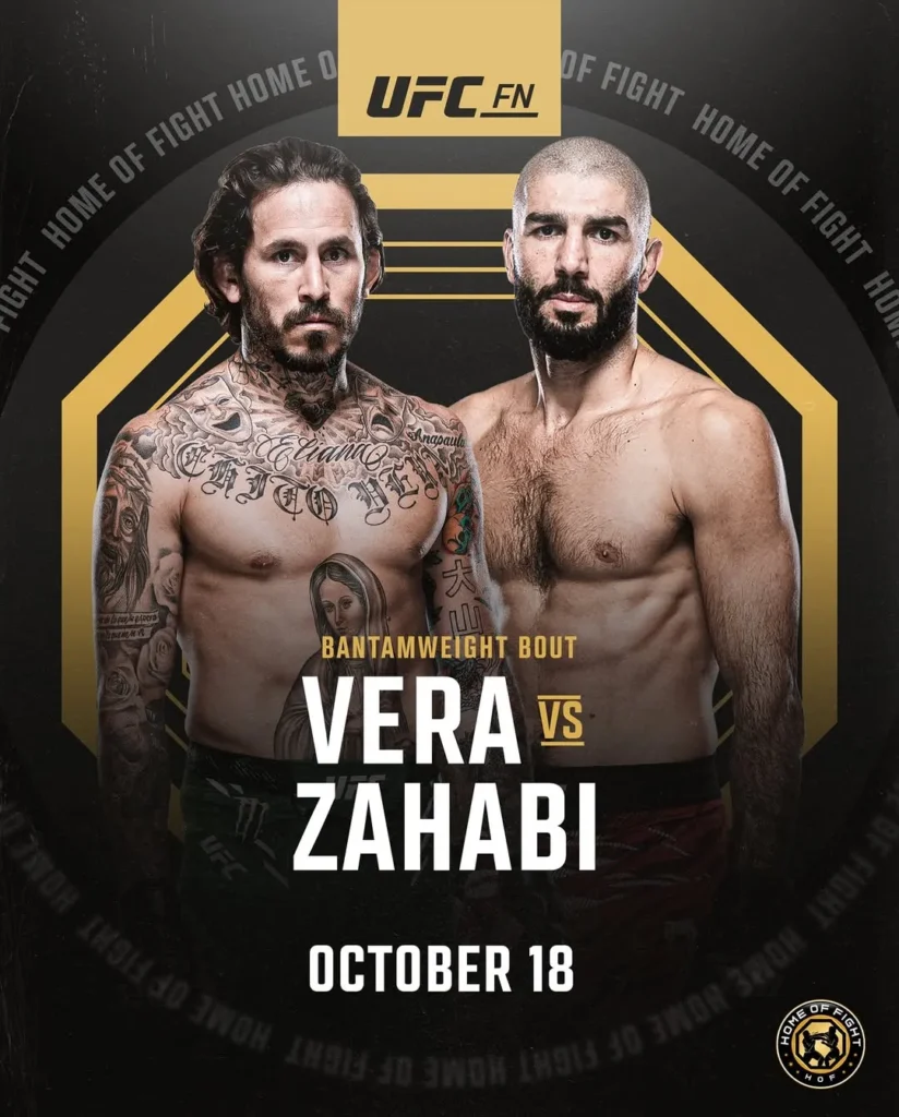 Vera llega con dos derrotas consecutivas, ante Sean O’Malley y Deiveson Figueiredo, pero mantiene la confianza de su equipo y del público ecuatoriano, que ha seguido su trayectoria en la UFC desde su debut en 2014. Su rival, Aiemann Zahabi, vive un gran momento con seis victorias consecutivas y buscará también escalar posiciones en el ranking.