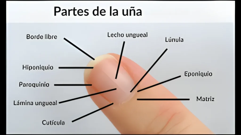 Las uñas están conformadas por distintas partes que cumplen un rol específico en su crecimiento y resistencia: