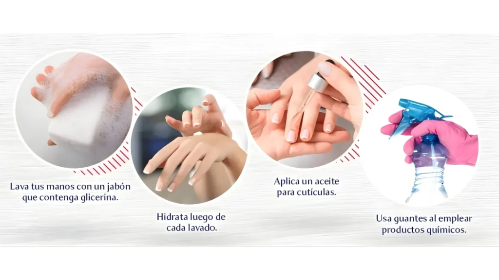 - Mantener las uñas limpias y libres de residuos que puedan irritar la piel.