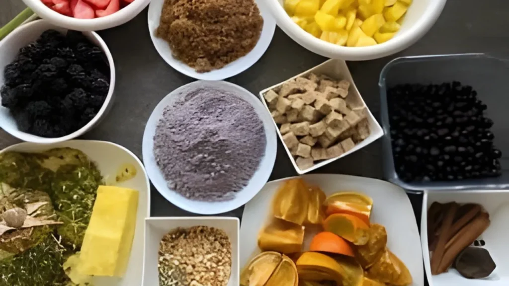 - Hierbas y especias: canela, izhpingo, clavo de olor, pimienta dulce, sangoracha y hierbaluisa.